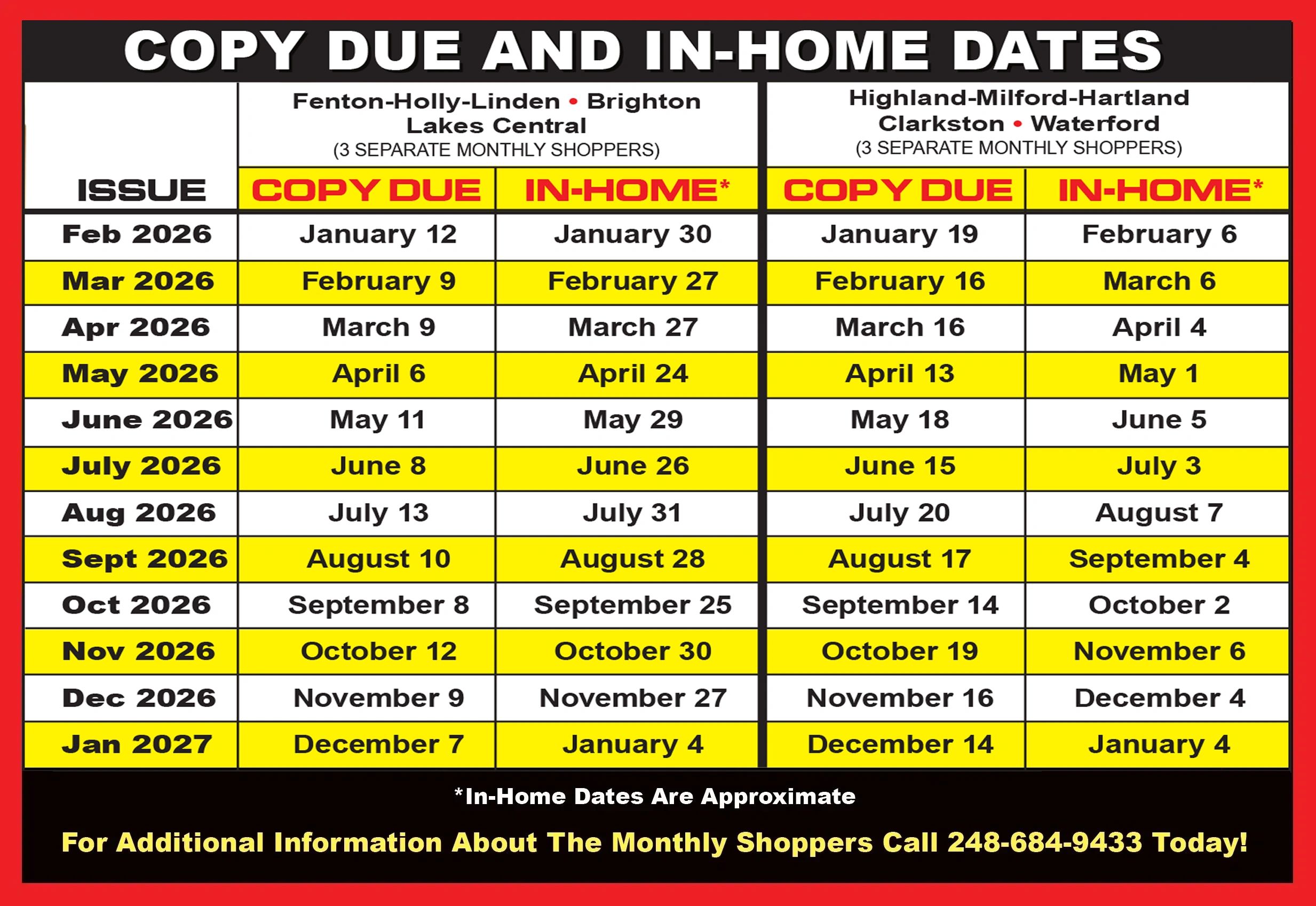 Call 248-684-9433 9449 Holly Road Grand Blanc, MI 48439 The Monthly Shopper Publications © 2026